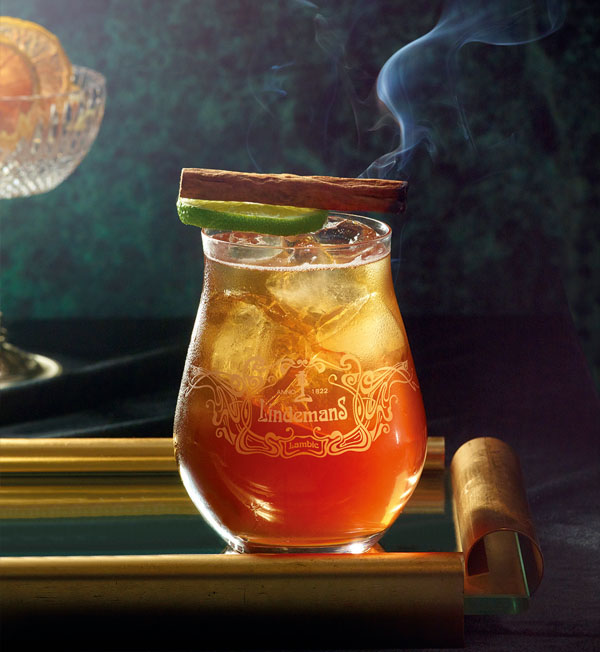 El cuerpo ligero de la cerveza Lindemans Faro es la base perfecta para este cóctel ahumado de sabor ligeramente ácido.
