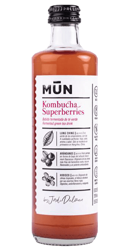 Bebida fermentada de té verde elaborada con ingredientes ecológicos entre los que se encuentran una base de té Lung Ching, hibisco y arándanos. El té de Lung Ching es conocido como el té de los emperadores por sus grandes cualidades y se recolecta solo en primavera. Los arándanos aportan sus propiedades antioxidantes y el hibisco es digestivo, antiinflamatorio y relajante. El resultado es una bebida ecológica sin alcohol de sabor herbal y ácido con un rico toque dulce.