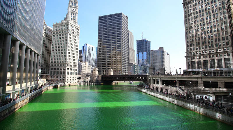El desfile del día de San Patricio se celebra en Chicago desde el año 1843. Desde el 1962, el río de esta ciudad se tiñe de verde todos los años. Esta celebración única atrae a miles de turistas todos los años. La sugerencia de teñir el río de verde surgió del sindicato local de fontaneros.