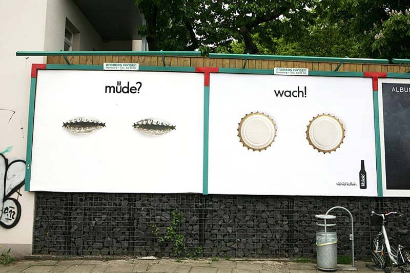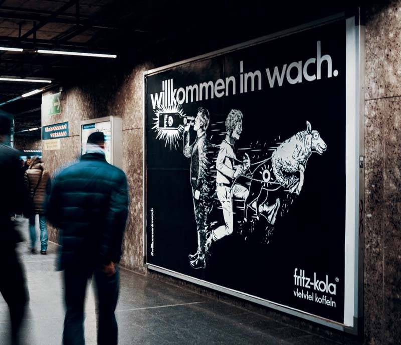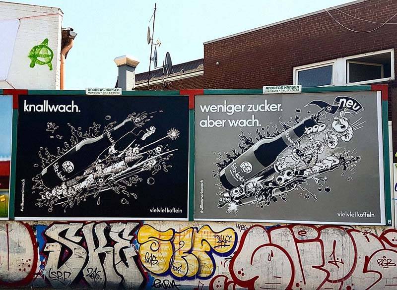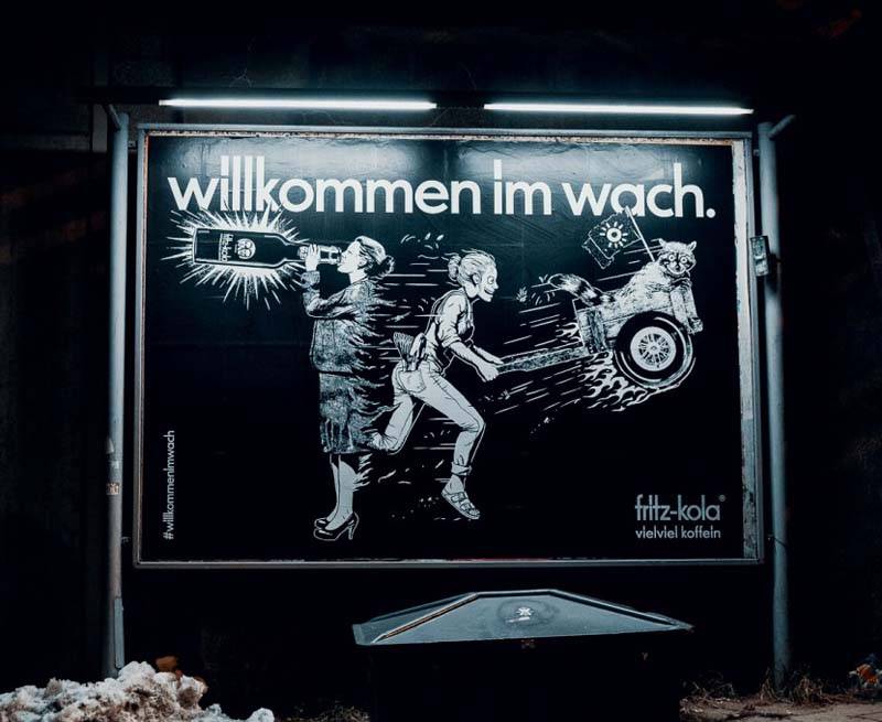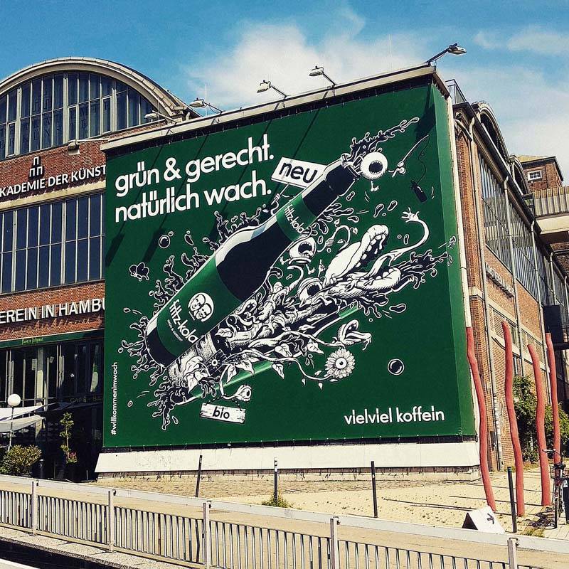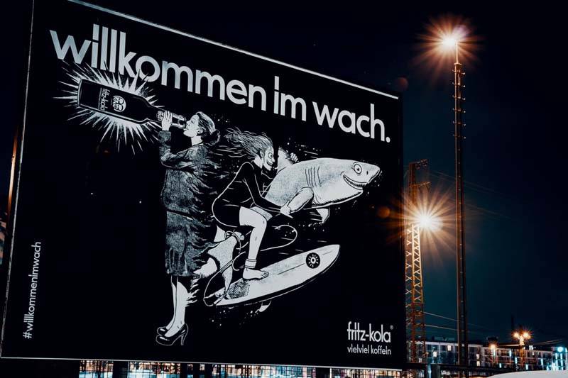 Los ilustres Rocket & Wink son los encargados de crear parte de las estrambóticas campañas publicitarias de Fritz Kola. Y es que, en cada campaña sorprenden con un nuevo e imaginativo diseño que suele tener en común unos ojos bien grandes  que nos animan a despertar. Arte y publicidad se mezclan y las líneas que separan a ambos se desdibujan. Es imposible quedar indiferente cuando antes una de sus vallas publicitarias. ¿Cuál es tu diseño favorito?