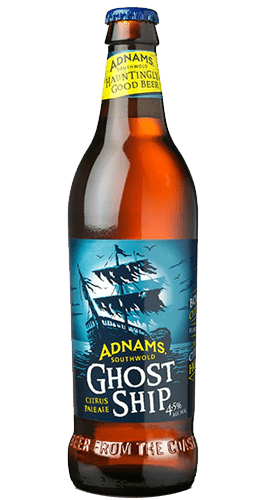 Adnams Ghost Ship es una Pale Ale británica de carácter cítrico con notas a lima y limón. Se elaboró por primera vez en 2010 como cerveza de temporada para celebrar Halloween . La idea inicial era que su botella mostrase en la etiqueta una calavera con dos huesos cruzados. Al ser el diseño muy similar al del símbolo del veneno finalmente se cambió por el de un barco fantasma en un naufragio.