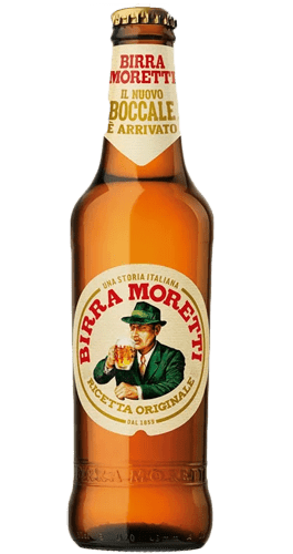Birra Moretti es una cerveza originaria de Italia, de estilo Pale Lager, de sabor suave y ligero con un gran equilibrio entre las notas dulces y amargas. Se elabora mediante baja fermentación con materias primas naturales de la mejor calidad como malta Pilsen de cebada, maíz, lúpulo y agua de gran calidad, junto con la exclusiva levadura Moretti. Birra Moretti es una de las cervezas más populares de Italia