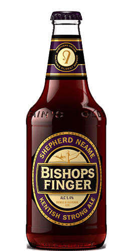 Bishop’s Finger es una de las cervezas británicas vendidas en botella más antiguas del Reino Unido. Esta Kentish Strong Ale fue creada en 1958 tras el levantamiento del racionamiento de la malta al final de la década de 1950. Su nombre rinde homenaje a los carteles con forma de dedo que señalaban a los peregrinos el camino correcto hacia la tumba de Thomas Becket, en la ciudad de Canterbury.