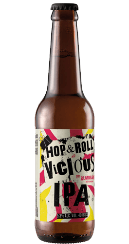 Almogáver Vicious IPA pertenece a la serie Hop & Roll y es una India Pale Ale intensa y con mucho carácter. Se elabora con los lúpulos CTZ, Cascade, Willamette y Mosaic y las maltas Maris, Otter, Munich y Trigo. El resultado es una cerveza artesanal muy refrescante, de bajo contenido alcohólico –para su estilo- y con similitudes a una Session IPA.