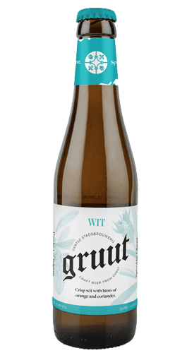Gruut Wit es una cerveza belga sin lúpulo muy aromática con un olor afrutado fragante y una acidez ligeramente herbácea. Tiene un cuerpo ligero, pero suave. Gracias a las especias, los sabores son redondos, muy finos y complejos. La primera impresión es una sequedad especiada, pero también subyace una dulzura leve y cremosa. La cerveza sin lúpulo Gruut Wit es la más suave de todas las cervezas Gruut sin lúpulo y la que tiene menor graduación alcohólica.