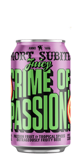 Juicy Crime of Passion es una cerveza lámbica elaborada con una combinación de fruta de la pasión y especias tropicales que da como resultado una cerveza de frutas exóticas ligeramente hazy.