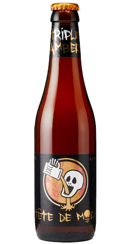 Tête de Mort Triple Amber es una cerveza ámbar belga de cuerpo denso y carácter complejo, suave al paladar, con un final amargo y ligeramente especiado. Se elabora con maltas oscuras y caramelizadas y una cuidada selección de lúpulos. Su nombre significa “cabeza de muerte”.