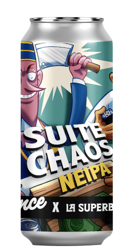 Suit Chaos está elaborada por La Quince en colaboración con Biarritz, de Francia. En esta deliciosa NEIPA se combina Mosaic y Idaho 7 en todos sus formatos para lograr una cremosa New England.