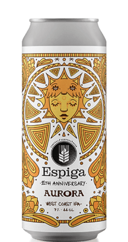 Aurora es una West Coast IPA de 7% ABV, elaborada para celebrar once vueltas más al sol de la cervesa Espiga. Su color dorado brillante recuerda al sol que nos da la vida.