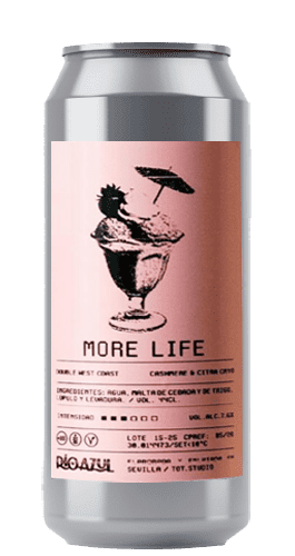 More Life es una Double West Coast IPA afilada y jugosa, perfecta para quienes buscan intensidad sin perder frescura. El dúo Cashmere y Citra Cryo despliega aromas brillantes de pomelo rosado, melón verde y toques herbales frescos, sobre una base limpia, crujiente y ligeramente resinosa. El amargor es firme pero elegante, con un final seco que pide un trago más. Con 7,6%, equilibra potencia y bebilidad como un malabarista en la playa de Venice: divertido, vibrante y lleno de flow.