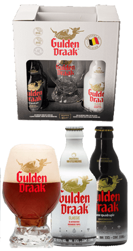 ¿Estás buscando cerveza para regalar? Este pack de cerveza Gulden Draak es el regalo perfecto para cualquier amante de la cerveza belga. Contiene dos botellas de cerveza Gulden Draak de 33 cl (una Gulden Draak clásica y una Gulden Draak 9000) y el típico vaso Gulden Draak Copa Huevo Dragon