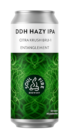 Entanglement es una DDH IPA con dry hop de los lúpulos Citra Cryo, Krush T90 y BRU-1 T90. No está filtrada ni pasteurizada.