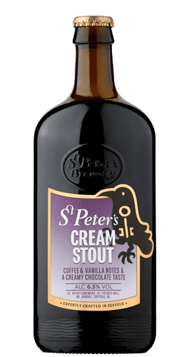St Peters Cream Stout es una cerveza negra británica de perfil potente, con notas a café, chocolate y vainilla, que se elabora con una combinación de las mejores maltasde East Anglia y lúpulos locales. Ha obtenido numerosos premios, entre los que se encuentran la medalla de oro en Asian Beer Challenge 2022, medalla de oro en European Beer Challenge 2022 y el premio a la mejor cerveza británica en World Beer Awards 2021.