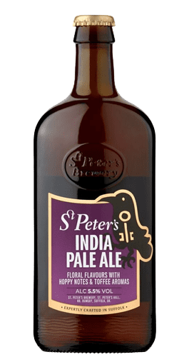 St Peters India Pale Ale es una cerveza británica elaborada con grandes cantidades de lúpulos que le otorgan un rico aroma a tofe y sabor floral y cítrico. Tiene un cuerpo robusto, color dorado oscuro y el perfil característico de una IPA.