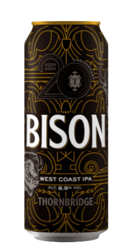 Bison es una West Coast IPA inglesa elaborada con las maltas Low Colour Maris Otter, Caramalt y Munich y los lúpulos Amarillo, Cascade, Citra y Simcoe que le otorgan un intenso perfil a fruta tropical y pino. Es una cerveza atrevida y poderosa.