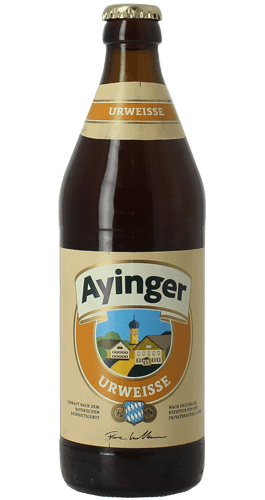 Ayinger Urweisse es una típica cerveza de trigo alemana de estilo Dunkelweizen, elaborada mediante alta fermentación con las mejores maltas tostadas procedentes de Aying. El resultado es una cerveza de color ámbar oscuro, con aspecto turbio y perfil intenso y maltoso y sabor complejo y afrutado con un ligero toque amargo.
