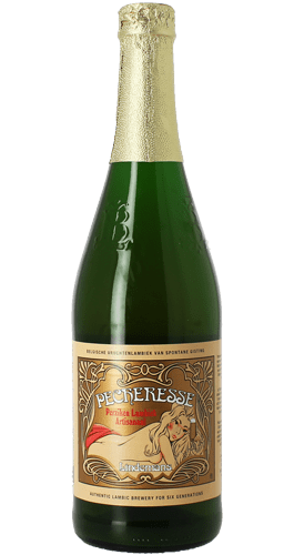 Belgisches Bier als erfrischend fruchtig säuerlich-süßes Pfirsich-Bier auf Lambic Basis, 2,5%. 75 cl