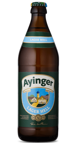 Ayinger Lager Hell es una típica cerveza de trigo alemanade tipo Lager Hell, el estilo más consumido en Baviera de forma habitual. Tiene un perfil muy equilibrado y un sabor suave y agradable con sutiles notas a malta. Se suele usar para cocinar o para acompañar a típicos platos bávaros.