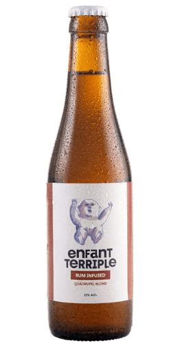 Enfant Terriple Rum Infused reinterpreta la Quadrupel belga tradicional en una versión singular de color rubio dorado. Frente al perfil habitualmente oscuro de este estilo, esta cerveza destaca por su tonalidad cálida, su corona de espuma cremosa y un aroma rico e intenso, en el que las notas dulces y especiadas del ron añejo se integran con gran armonía.