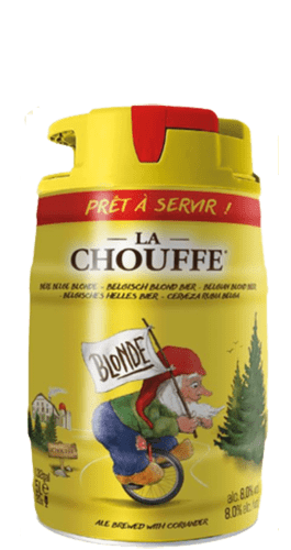 La Chouffe Blonde en formato barril de cinco litros, lista para servir. El barril incluye una cápsula de CO2 y no necesita máquina. Es ideal para acompañar celebraciones, barbacoas, picnic o aperitivos. La Chouffe Blonde es una cerveza rubia fuerte, especiada y afrutada con un toque a cilantro.