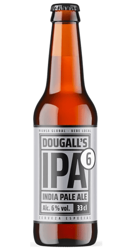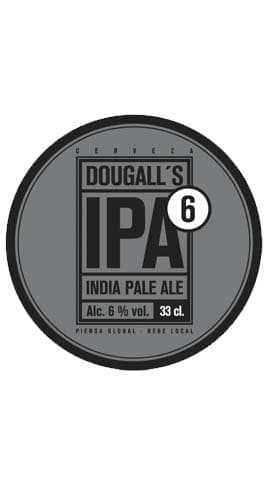 Dougall’s IPA 6 es una cerveza rubia artesana de cuerpo ligero y muy equilibrada. Se elabora con las maltas Cara Gold, Extra Pale y Trigo Torrefacto y los lúpulos Columbus, Simcoe, Cascde y Mosaic. El resultado es una IPA muy afrutada de final sutilmente amargo. Se elaboró por primera vez en 2016 y surgió como evolución de la IPA 4 de Dougall’s.