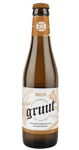 Gruut Bruin es una cerveza sin lúpulo con un comienzo suave y agradable y un regusto persistente que procede de una mezcla de frutos secos. No contiene lúpulo, por lo que es apta para celíacos.