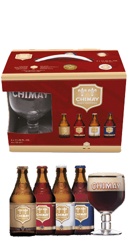 Este estuche contiene tres botellas de auténtica cerveza trapense Chimay de 33 cl (1 Azul, 1 Roja, y 1 Blanca) y una copa original diseñada especialmente para degustar la cerveza. Es un regalo de cerveza ideal para cualquier amante de la cerveza artesana belga.