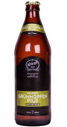 Weiherer Grünhopfen-Pils es una cerveza Lager alemana de tipo Pilsen, con aspecto turbio y aroma sutil a lúpulo. En su elaboración se utiliza lúpulo cultivado por la propia cervecería, seleccionado cuidadosamente y cosechado a mano. El agua utilizada para las cervezas Weiherer procede del depósito privado "Ködeltalsperre". En 2021 Grünhopfen-Pils obtuvo la medalla de plata en los Meininger's Awards a la mejor cerveza artesana internacional.