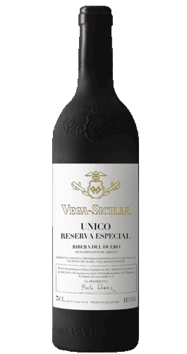 Vega Sicilia Reserva Especial is a elegant and aromatic red wine, with Denominación de Origen Ribera del Duero, made from Tempranillo and Cabernet Sauvignon grapes, grown in the oldest vineyards in Valbuena de Duero, by the Duero river. It is made from a blend of the best vintages of the stunning Vega Sicilia Único wine. Traditionally, wineries used to produce two types of wines in each harvest: the one of the current year and another wine without a specific harvest, which they called "Reserva Especial". This wine pays tribute to that tradition. Vega Sicilia was acquired in 1982 by the Álvarez family, and produces wines of great prestige.