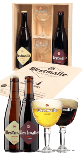 Pack Westmalle 2 Cervezas 2 Vasos en estuche de madera