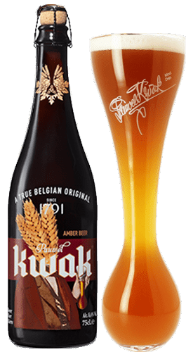 1 bouteille de bière Kwak 75 cl et deux verres.