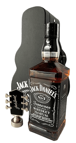 Incluye 1 botella de Jack Daniel's Old No. 7, estuche para guitarra de cuero, tapón con forma de clavijero y 1 tarjeta