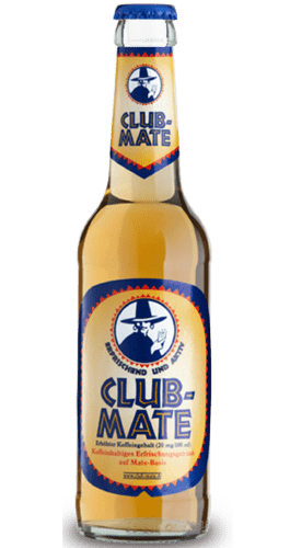 Club Mate es un legendario refresco de mate sin alcohol elaborado mediante la fermentación de mate, una antigua hierba procedente de las selvas de América del Sur. Este ingrediente se combina con cafeína, tanino y otros ingredientes naturales.