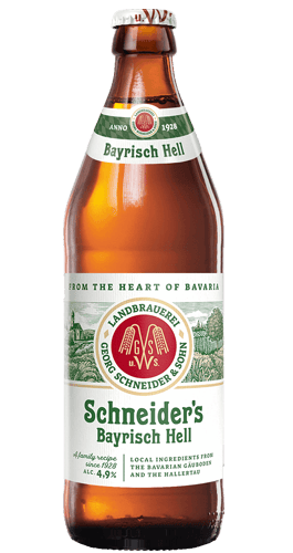 Schneider Helles es una cerveza Landbier alemana procedente del sur de Baviera, elaborada según la Ley de pureza bávara de 1516 con ingredientes 100% bávaros con procesos artesanales. Tiene un color dorado claro y un aroma equilibrado y es una cerveza rubia refrescante y muy bebible, con un sutil cuerpo maltoso y aromas florales de lúpulo.