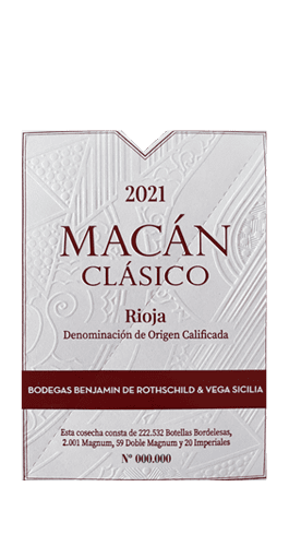 Macán Clásico es un vino tinto monovarietal de gran elegancia y muy agradable al paladar, con Denominación de Origen Calificada Rioja, elaborado únicamente con uvas de la variedad Tempranillo, procedentes de viñedos con una edad inferior a los 30 años. Su elaboración corre a cargo de la conjunción de dos grandes nombres del mundo del vino: las bodegas Benjamín de Rothschild y Vega Sicilia, cerca de Samaniego, localidad de la provincia de Álava.