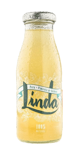 Linda Pera es un zumo elaborado con peras naturales combinadas con pimienta de Sichuan. El resultado es una bebida natural y vegana elaborada con zumo procedente de peras exprimidas, no de concentrado, sin azúcar ni ningún otro aditivo y sin gluten. Su sabor es muy aromático, ligeramente dulce y nada picante, ya que la pimienta de Sichuan no es picante. Se presenta en un envase de vidrio reciclable, ideal para conservar todo el sabor del refresco.